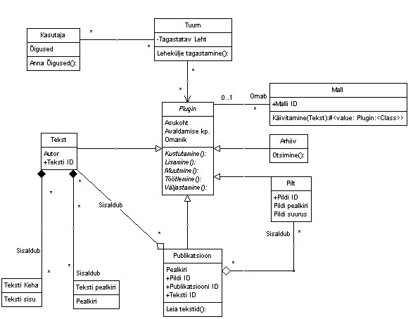 esitab süsteemi klasse, nende omadusi ja operatsioone ning klassidevahelisi seoseid, kirjeldades seeläbi süsteemi ülesehitust.
